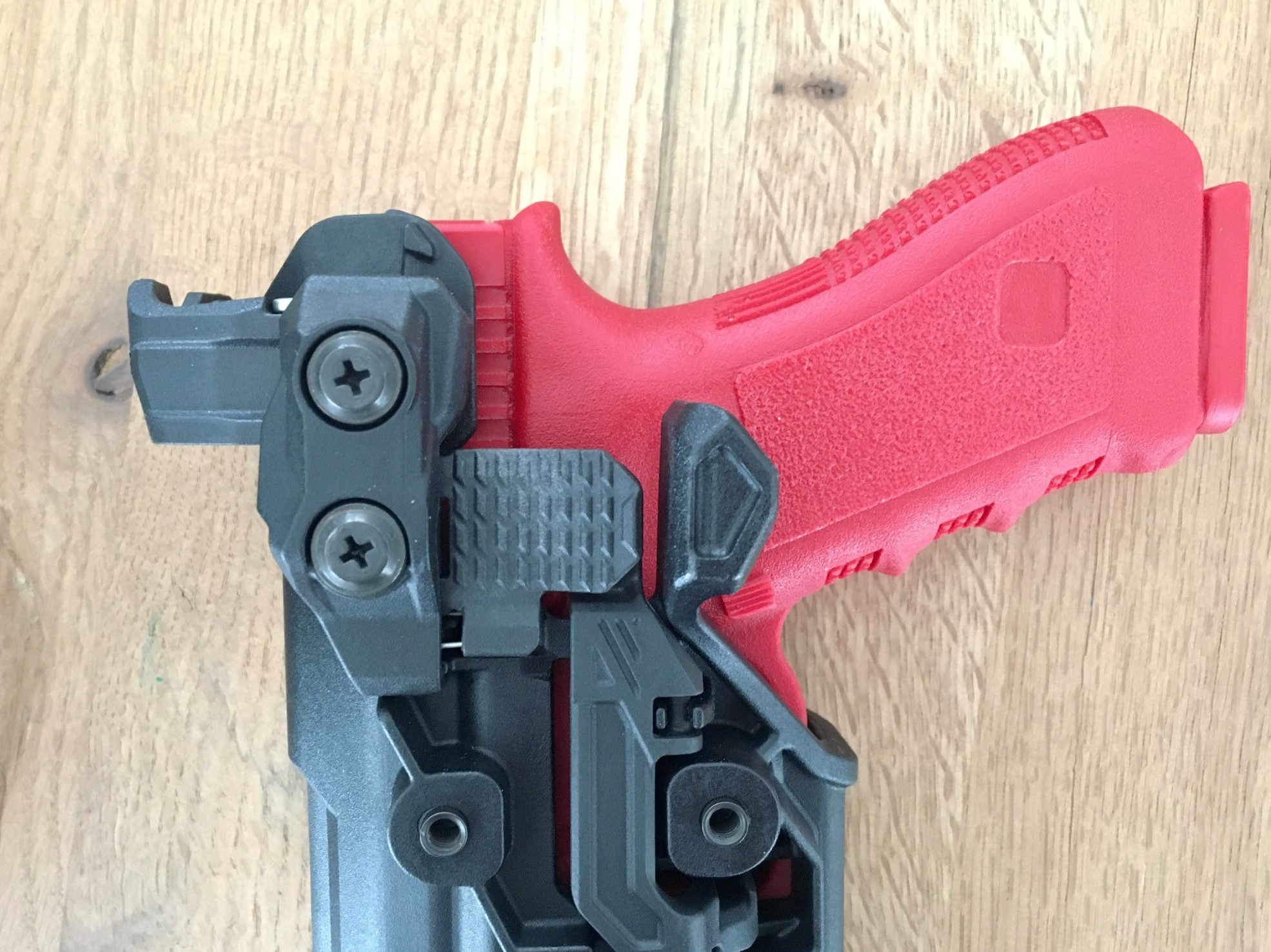 Opgelet, het holster is enkel te gebruiken met wapenlamp gemonteerd op het wapen, anders zit het wapen los in het holster.