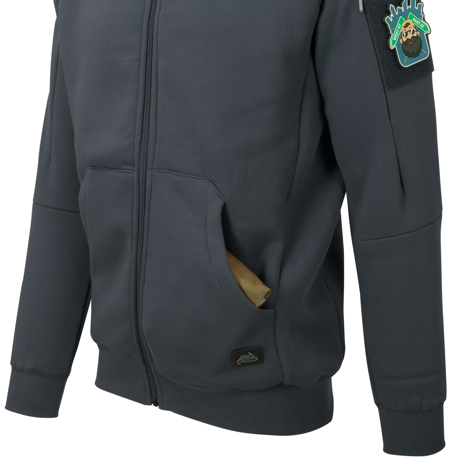 -Hidden pocket on left bicep