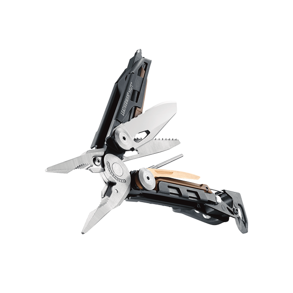 De Leatherman Mut Multitool is een zeer uitgebreide multitool met een stoere, robuuste look die je alles biedt wat je nodig hebt, zeker als je een vuur- of jachtwapengebruiker bent. De multitool is namelijk erg makkelijk te gebruiken en te openen, wat nogal van pas kan komen in situaties waarin je een wapen gebruikt. De Mut is gemaakt van roestvrij staal met een zwarte oxide finish. Hij beschikt over de volgende 16 tools: