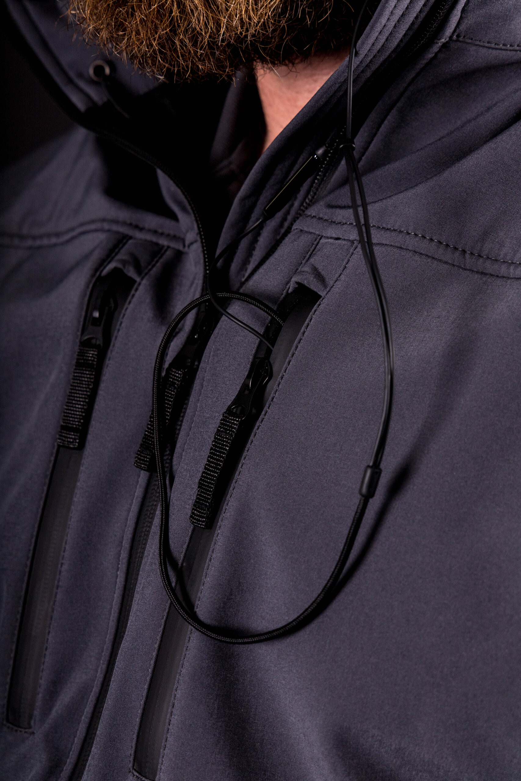 De softshell heeft een waterafstotende buitenlaag. Een windstopper aan de binnenzijde beschermt het lichaam tegen snijdende kou. In de kraag is een capuchon met harnas bevestigd voor optimaal draagcomfort, waarbij het harnas zorgt dat de capuchon “meedraait” als je het hoofd beweegt.